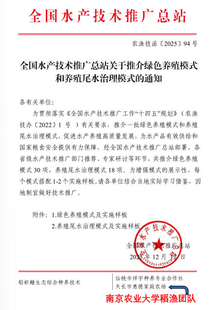 喜报|我会种养结合专业委员会的稻虾鳝综合种养技术模式入选全国模式