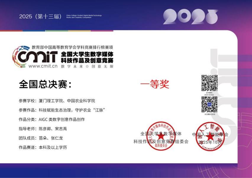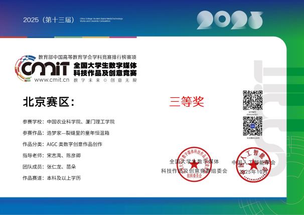 近日,“第十三届全国大学生数字媒体科技作品及创意竞赛”全国总决赛在哈尔滨顺利落下帷幕。我所2023级硕士研究生张仁龙和厦门理工学院苗朵的团队,获得国赛一等奖1项和北京赛区三等奖1项。