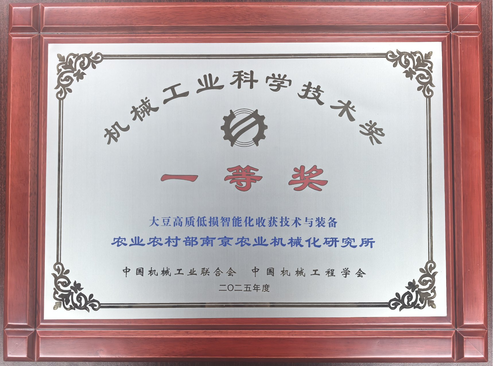 2025年12月20日,2025年度机械工业科学技术奖在上海举行了隆重的颁奖仪式。由我所主要作物智能农机装备与技术团队主导的成果“大豆高质低损智能化收获技术与装备”,获机械工业科学技术奖一等奖。