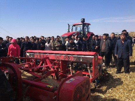 2019年3月27日至4月28日,江苏省示范性劳模创新工作室成员吴峰、顾峰玮、陈有庆、邵文奎、袁世农、顾满、罗伟文等在团队首席胡志超研究员统筹指导下,历时30余天,赴新疆博尔塔拉蒙古自治州、辽宁锦州黑山县等典型玉米-玉米、玉米-小麦轮作区,在已有研发及示范应用基础上,继续开展全秸硬茬地机播技术示范应用,并开展现场示范演示及技术培训5场次,累计培训种植大户及专业合作组织等500余人。